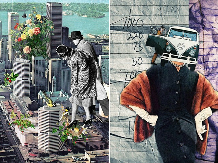 Eugenia Loli喜爱收集经典老杂志上印刷精美的复古图片,特别是 1950 年代的图片。透过 Loli 的巧思,那些图片抽离了原有的脉络,经过重新编排,组合成了带有普普艺术风格或是达达主义的超现实构图。