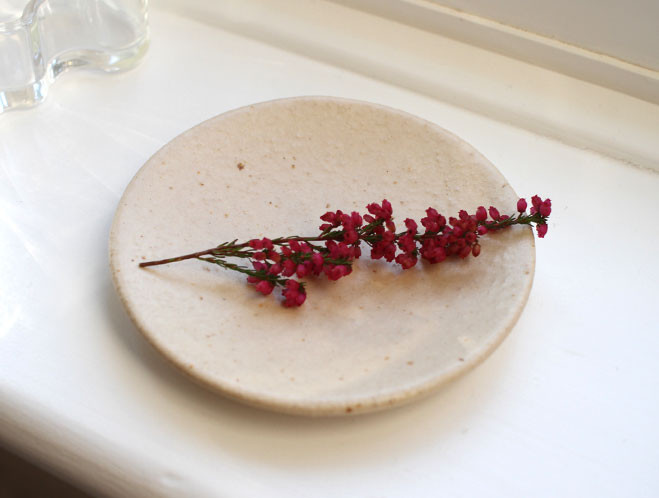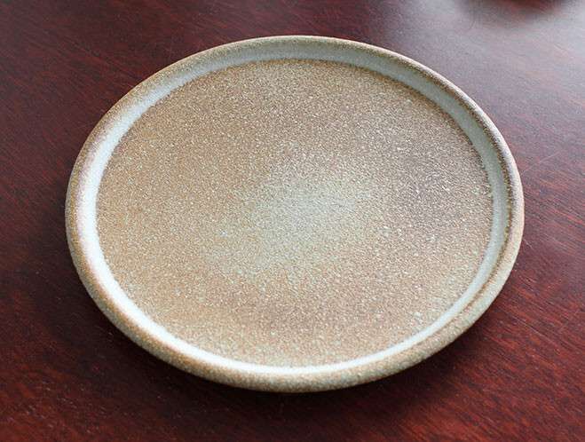 一个精致的手工餐盘,整体上看餐盘的设计别出新格,打破了传统干净整洁的餐具印象,整个盘面暗散着斑点,自然的珊瑚色底盘被天然的釉料釉成了棕色,像是经过了时间的沉淀那样,有了些许复古的感觉。餐盘边缘凸出的设计是防止食物的滑落,看得出米莎她用心的制作着每一件从自己手中诞生的陶艺品。