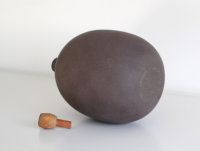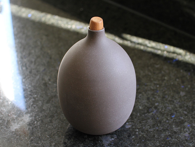大棕瓶的外形呈一泪滴状,细致的工艺将瓶身的线条表现得十分完美,瓶子的整个表面散布着白色的小斑点,搭配上木制瓶塞使得棕瓶从整体上看变得更精致协调了。
