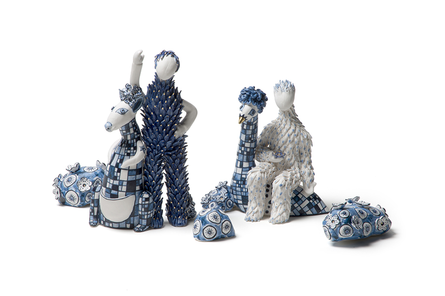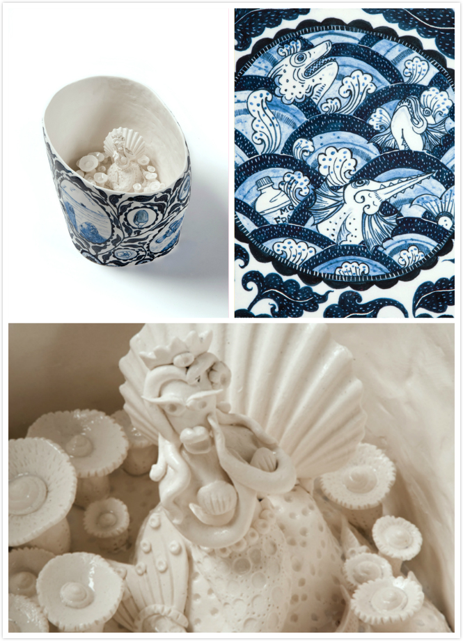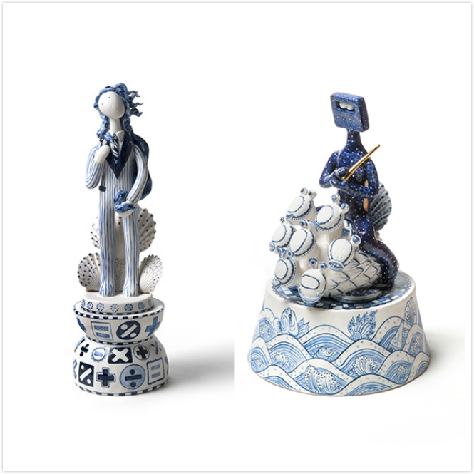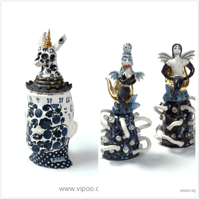 《蓝色王国》系列是艺术家对当代社会给珊瑚礁造成严重破坏的严厉批判,他运用传统泰国叙事手法,用陶瓷讲了一个关于珊瑚礁王国的故事。