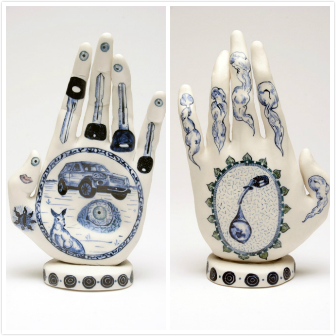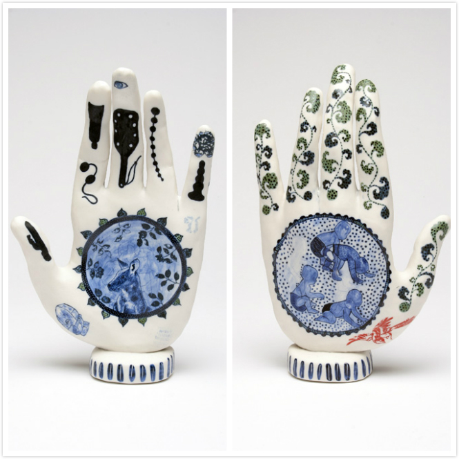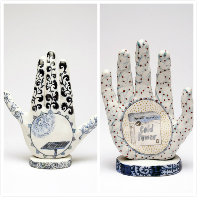手相在传统泰国文化中也是了解一个人命运的重要依据。艺术家通过塑造这一系列蓝白色陶瓷手,抨击人类社会面临的严峻环境挑战。