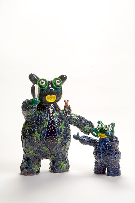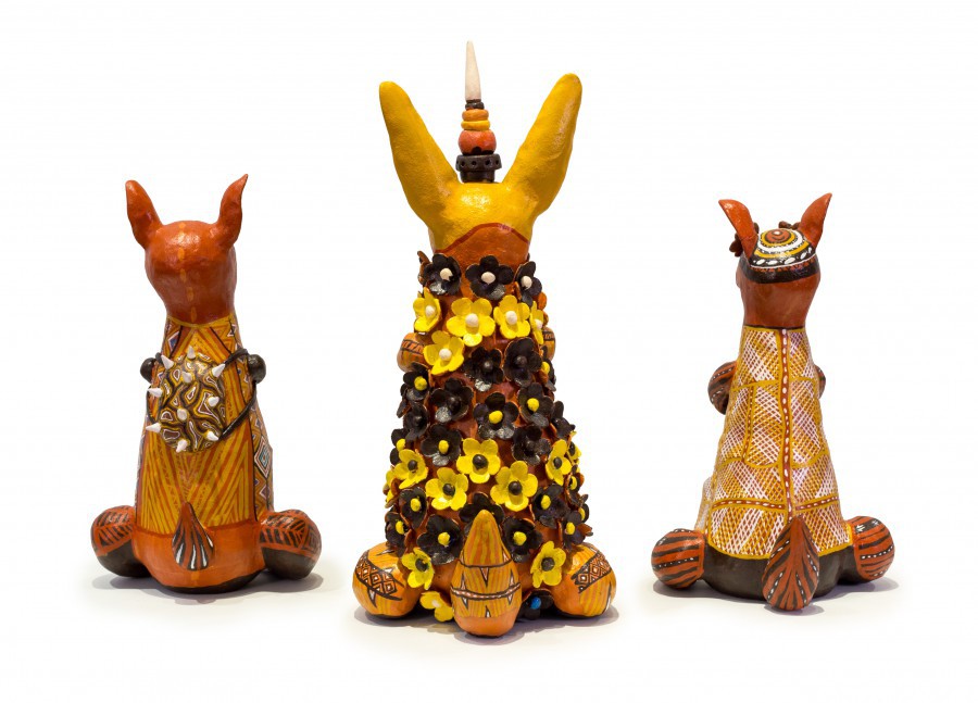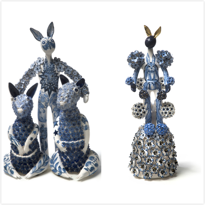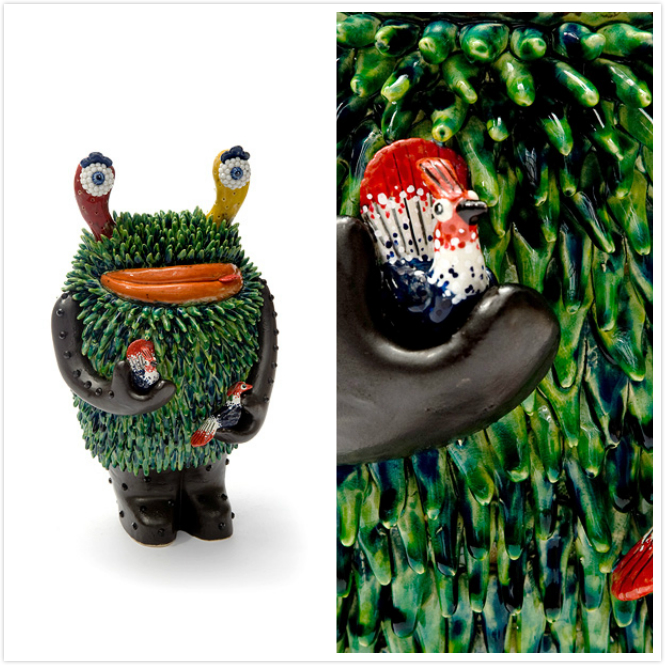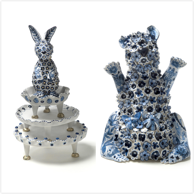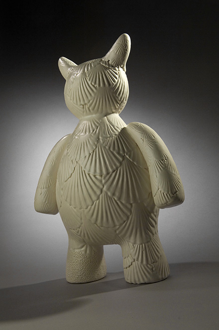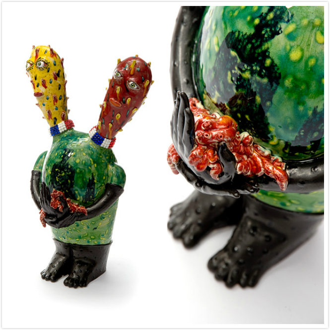 《“乐”土》是Vipoo陶瓷作品中最具深意的一组。这些跨物种的形象现代感极强,姿态万千,颜色各异,纹理多样,阐述了一个“入侵与定居”的矛盾话题。看似非常可爱、乖巧的动物(兔子、流浪猫),在另一种境遇下,却是“凶残入侵者”身份。这种强烈的对比,是艺术家巧妙隐喻,传达出东西方文化在碰撞与交流中的角色转换,引人深思。