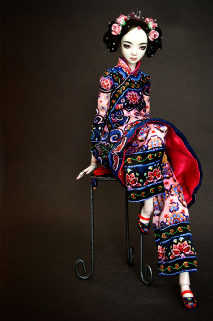 △“莲花”和“回声”系列中国娃娃,包含旗服、花盆底和三寸金莲等中国元素