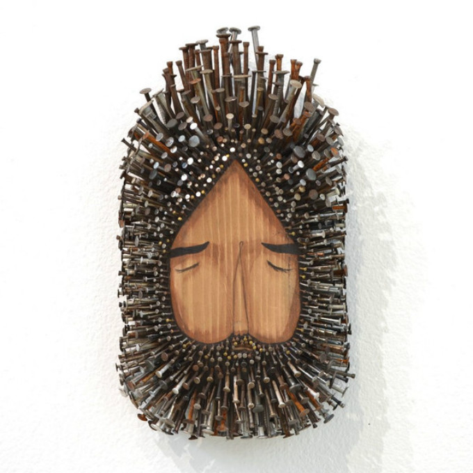 aha!我不是韩国欧巴,而是主人Jaime Molina打造的钉子大叔。顾名思义,我们的头发都是由钉子制成的,一块块木头和一堆钉子整齐排列。看完之后家里的钉子是不是有新的用途啦?