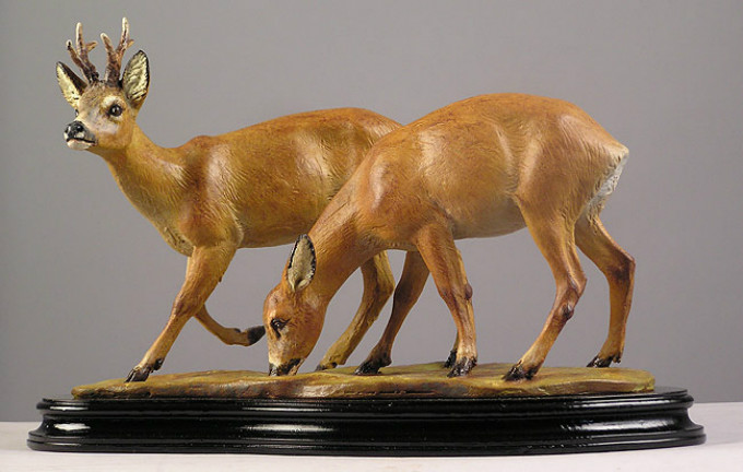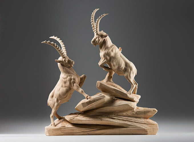 山羊,羚羊,梅花鹿和麋鹿,它们除了角都有相似的体型,Giuseppe Rumerio能够依靠他多年来的观察力和手头功夫在动态上和肢体细节上鲜明的区别出它们之间的差异。山羊的强壮争强好胜,羚羊的小巧灵敏,梅花鹿有点邻家小女孩的感觉,麋鹿庄严带了点仙气。