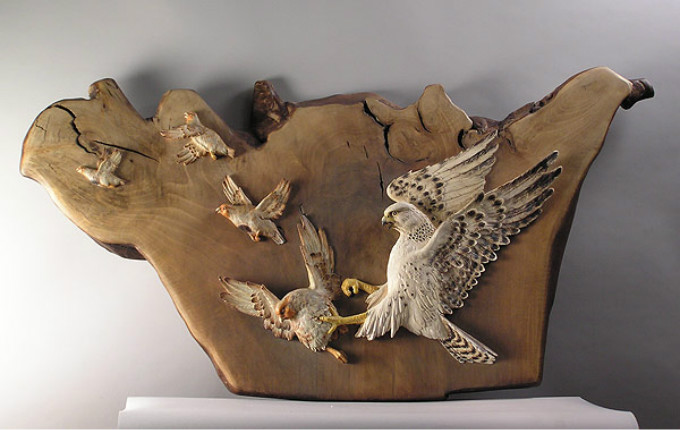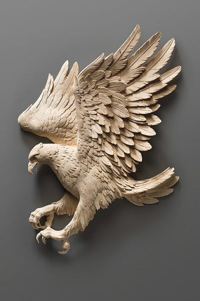 每一种动物的结构都不同,而鸟类更加复杂且还有那数不清的羽毛更是让木雕艺术家头疼,不过对于Giuseppe Rumerio这个老木匠来说,这些都不是问题。不论是猫头鹰,老鹰或是鸡,他对于每一只动物的理解都大不相同,猫头鹰外表可爱但一丝野性还是流露于羽毛当中;老鹰威风凛冽,展翅中带着杀气;鸡的呆萌温顺一看自知。