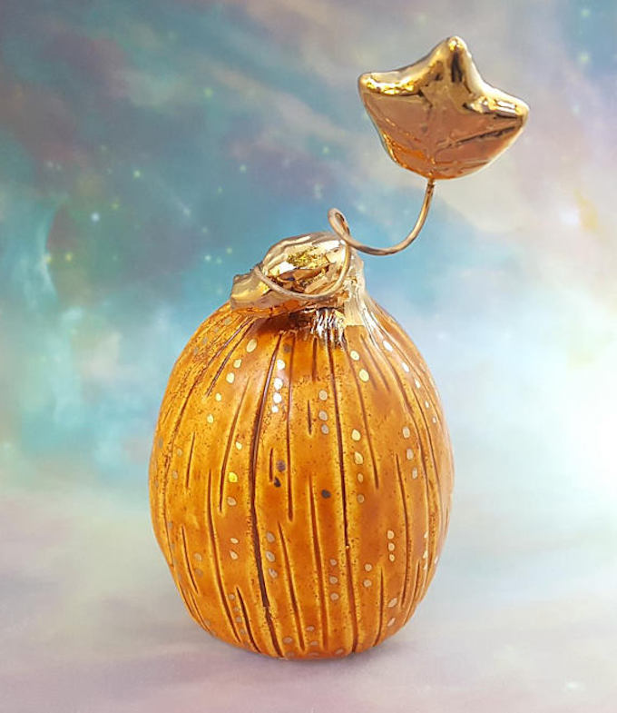 白色仙女猫看着就好甜蜜!采用高光泽的白色釉作为它的身体,小小的金色星星装点它的身体,七颗明亮的金色星星给了它一个梦幻般的仙女皇冠,一颗巨大的六芒星装点着它的胸膛,可爱的小尾巴在它身旁旋转着。