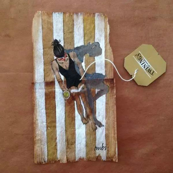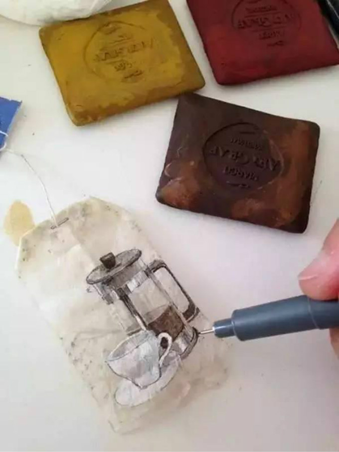 用茶包上的微型绘画捕捉每一天中的点点滴滴。