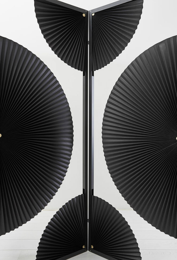 他们将金属屏风框架与东方纸扇元素结合起来,
