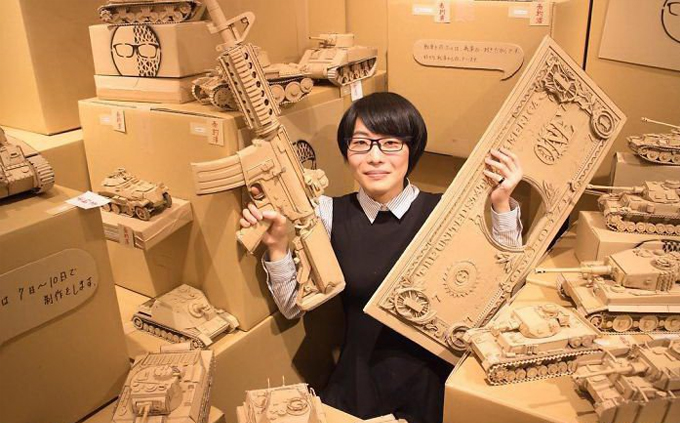 然而经过Monomi Ohno的手,纸箱的身价就翻上了百倍不止,结合她的3D设计灵感,平凡的纸箱可以有一千万种可能,上面的坦克便是其中的一种。
