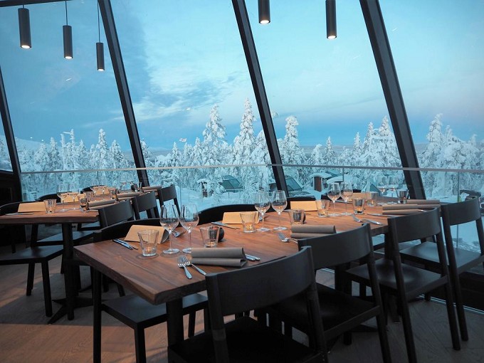 芬兰极光的最佳观测时间为10月至次年3月,「Levin Iglut」酒店共建有24个圆顶玻璃屋,你可以躺在床上仰望天空欣赏梦幻般的极光美景,亦可以望见浩瀚无垠的星空,玻璃屋外设有户外 SPA 浴缸。餐厅同样采用全景玻璃窗设计,用餐时能够一览皑皑雪景。