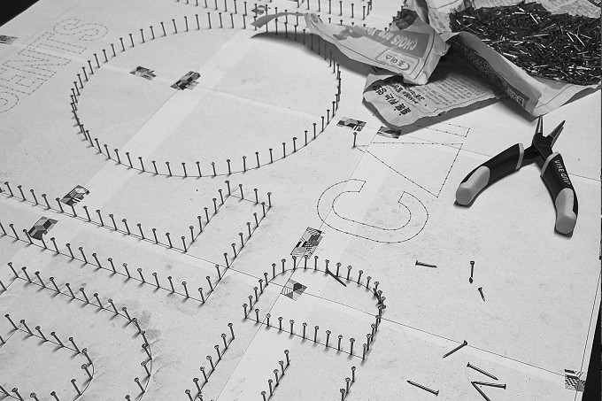 制作过程却很复杂,首先要在纸上打样,并顶上钉子固定位置
