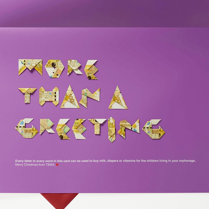 A: 2014年圣诞节我为一座孤儿院制作了大型圣诞节贺卡。考虑到孤儿院在很多地方都需要花钱,于是我将纸币折叠成字母拼成句子,为他们制作了贺卡,既能让孩子们开心,也能够切实帮助到孤儿院。