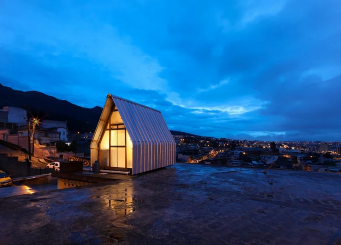 在厄瓜多尔基多圣胡安社区现有建筑的屋顶上,有一个“寄生屋”(casa to)——一个只有12平方米的紧凑住宅。该项目的灵感来自前乌拉圭政治家jose mujica的一句话,他说:“贫穷不是拥有的少,而是需要的多。”考虑到这种精神,这个微小的结构只能为个人或夫妻提供基本的生活功能。