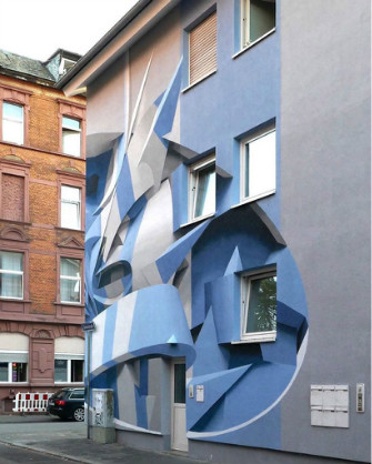 peeta用他的一幅大型变形壁画改造了德国一座私人住宅的立面。这名意大利艺术家的真名是曼海姆的曼努埃尔·迪里塔(manuel di rita),他在曼海姆的一个街角画了他的几何图案,用于2019年的城市壁画项目。