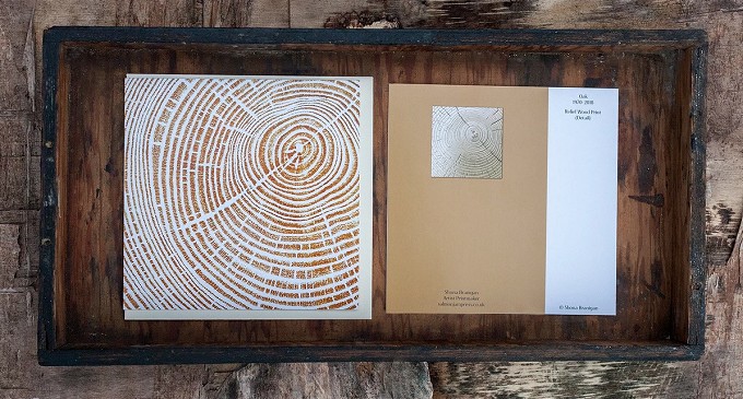 英国版画艺术家 Shona Branigan 用一种的特殊的方式,将它存在过的痕迹印在纸上。正如我们通过年轮了解一棵树木的年岁,她用雕版印刷将橡木的历史记录下来。