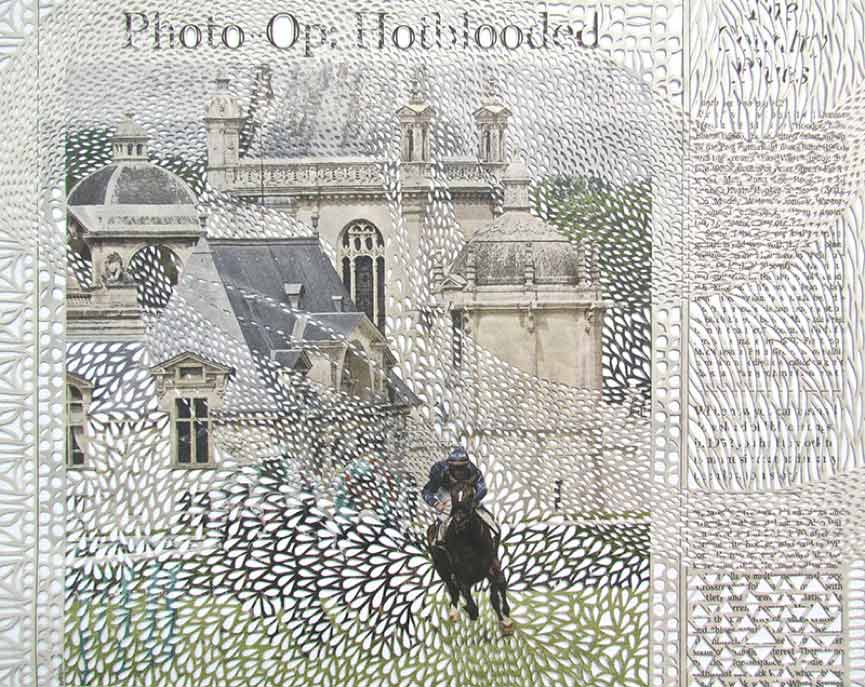 米里亚姆·迪翁用天马行空的想象力开始了她的创作,而工具竟然是一把医用手术刀。她舍弃报纸中长长的文字段落,只保留部分主标题,再根据新闻内容,在保留原有配图的情况下设计新的图案。从开始构想,到雕刻成型,需要耗费巨大的心血和耐心,简直非10级强迫症所不能为也。