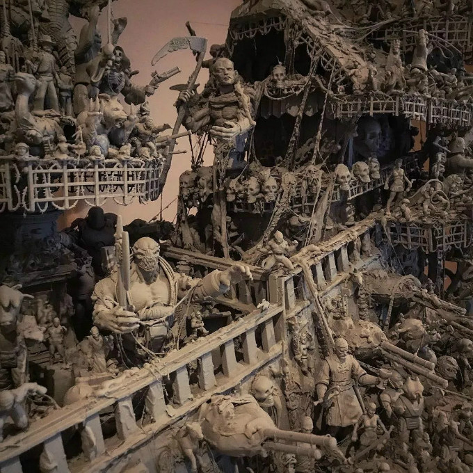 Stieva表示,这是他创作过的难度最大的一个作品,而且,很可能中途夭折。从上到下,从前到后,从整体到细节,需要注意的地方太多了。只是其中一个小小的人物,都要花上好久的时间打磨,更别说这一船“魑魅魍魉”了。
