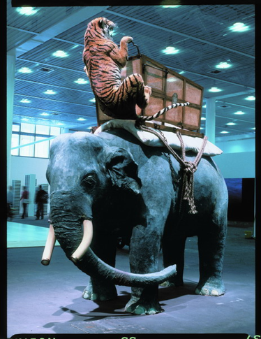 1999年,黄永砯以作品《一人九兽》代表法国参加威尼斯双年展。
