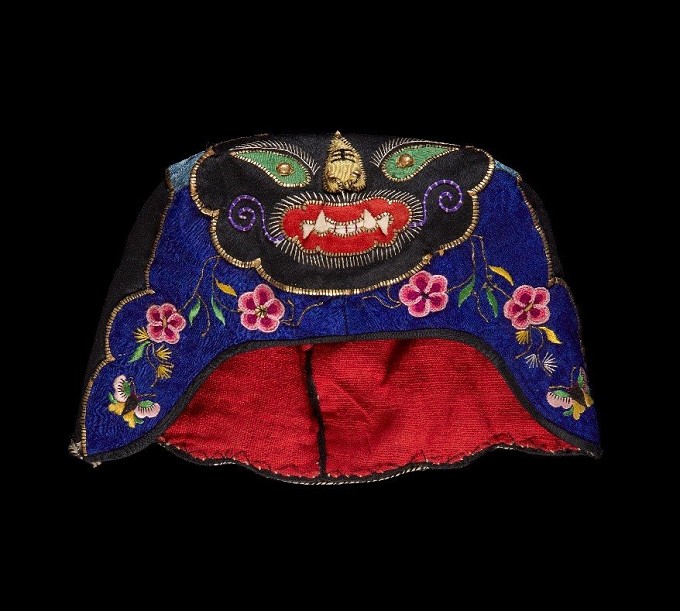 在本次展览的官方页面展示着本次展览的核心展品:一顶经典的中国虎头帽。这件作品也印证了英国人对中国传统刺绣工艺与刺绣艺术品的喜爱之情。