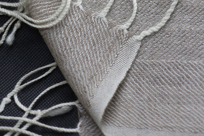 轻初选用极其柔软的阿拉善原色山羊绒纱线织就的围巾以大小人字纹相间设计而成,末端带有长流苏。其名称“人之爱”意为将人与人之间的每个温情时刻,透通亲肤的羊绒纤维来储存爱的记忆。