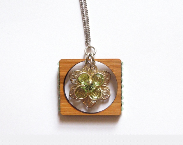 尺寸:3cm x 3cm竹挂坠, 挂链周长40cm
