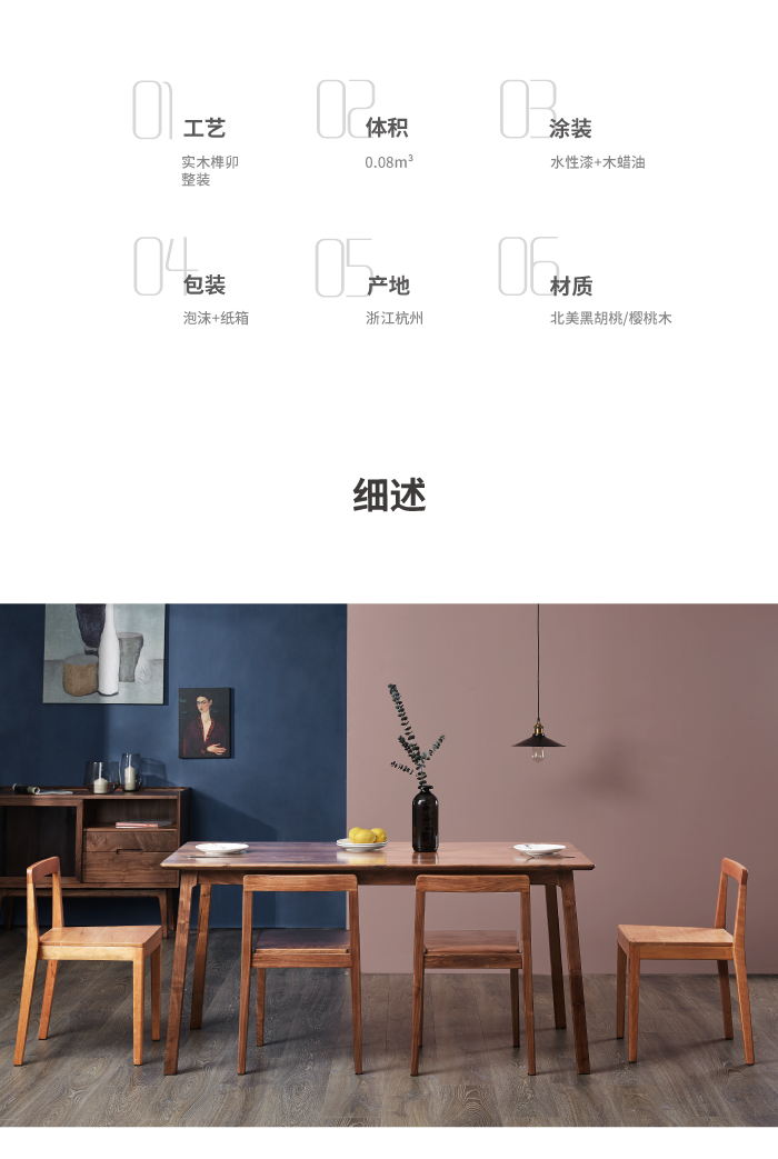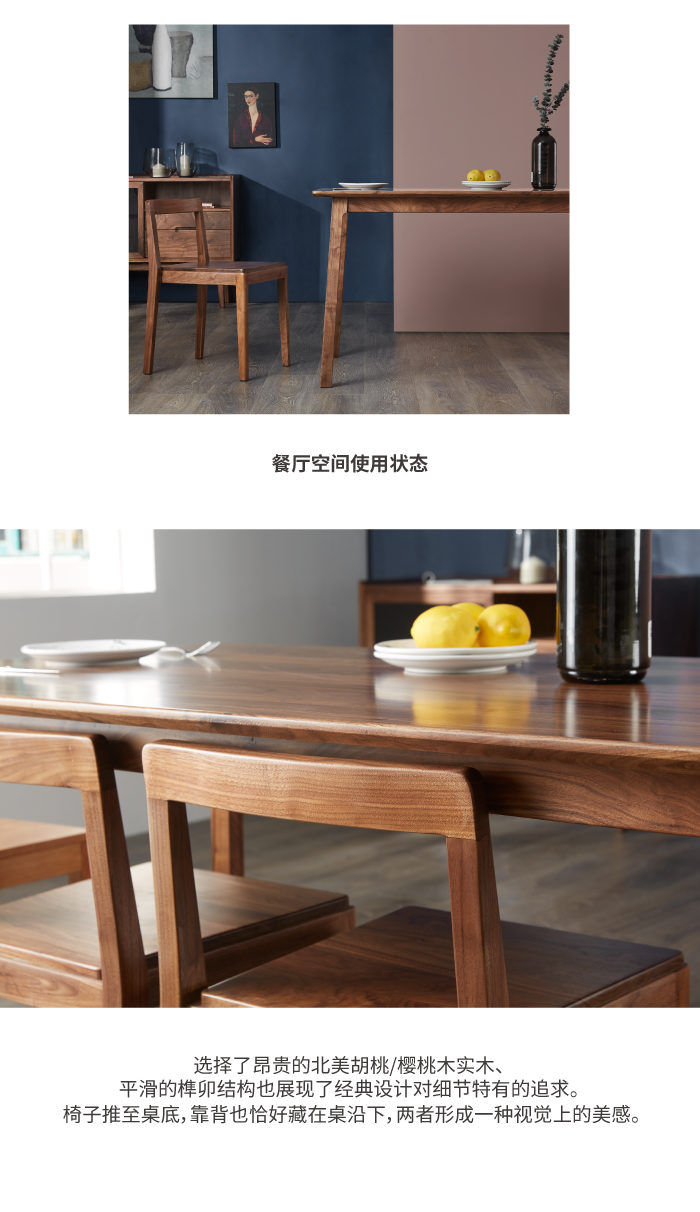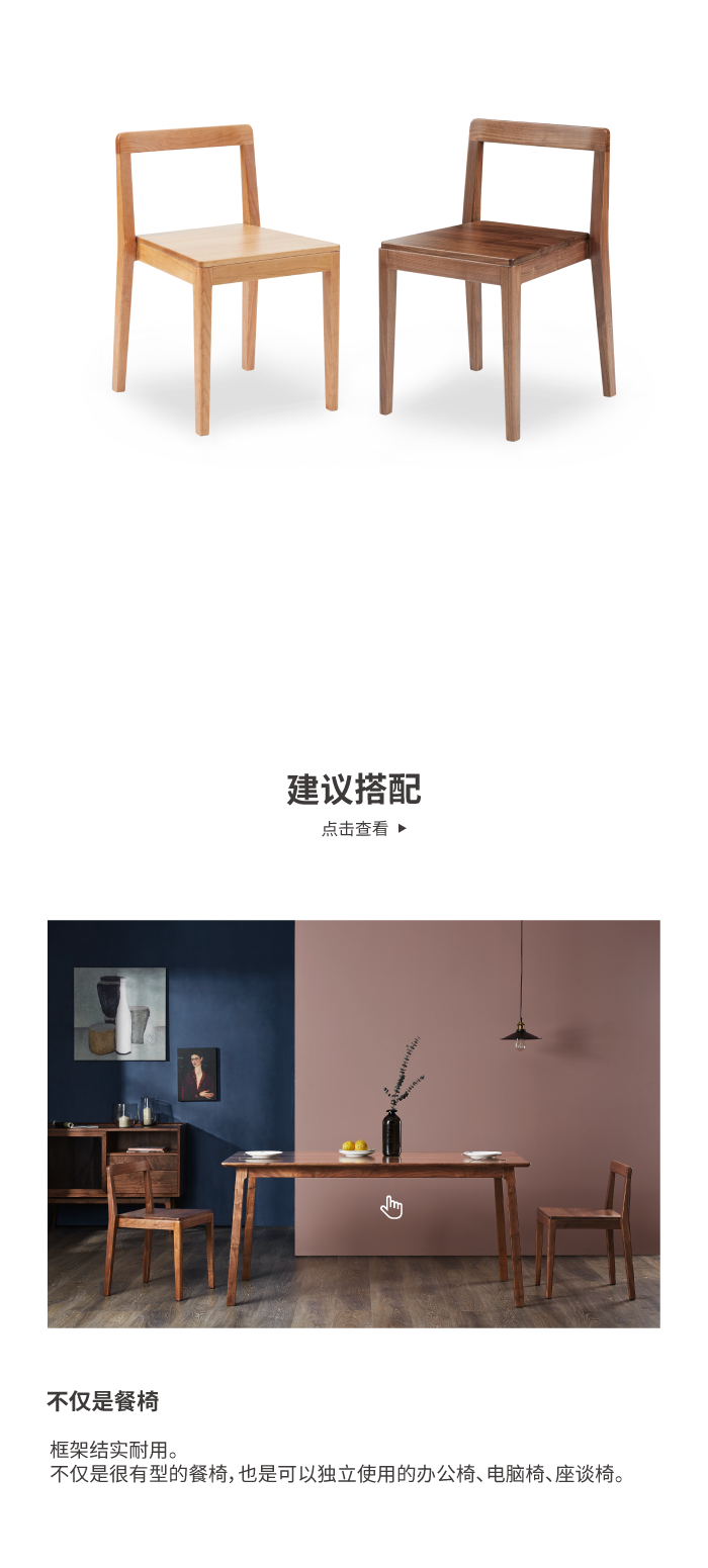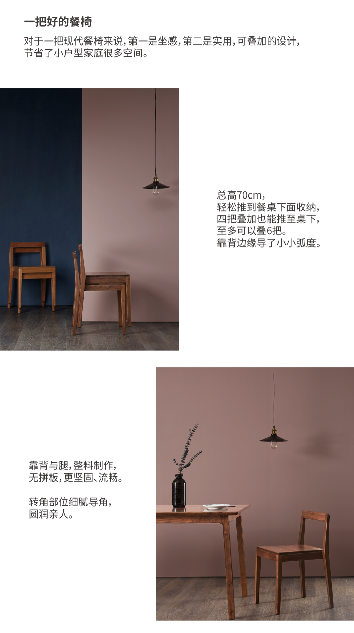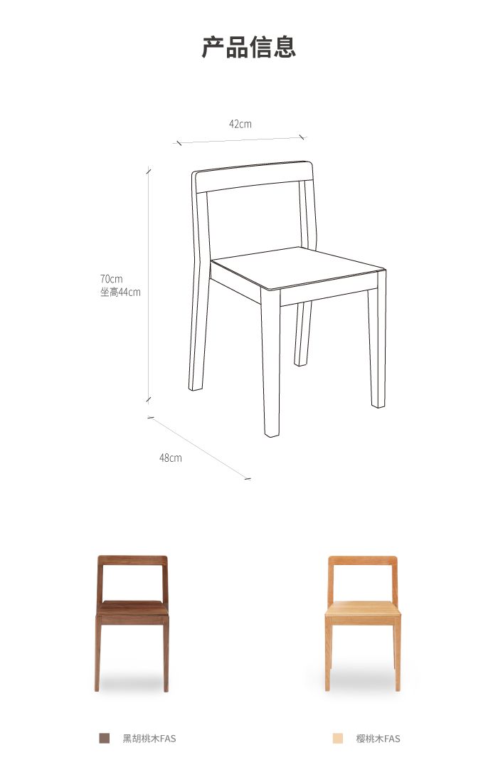 物应「朴石餐椅」黑胡桃樱桃木小户型可堆叠加餐桌椅全实木办公椅