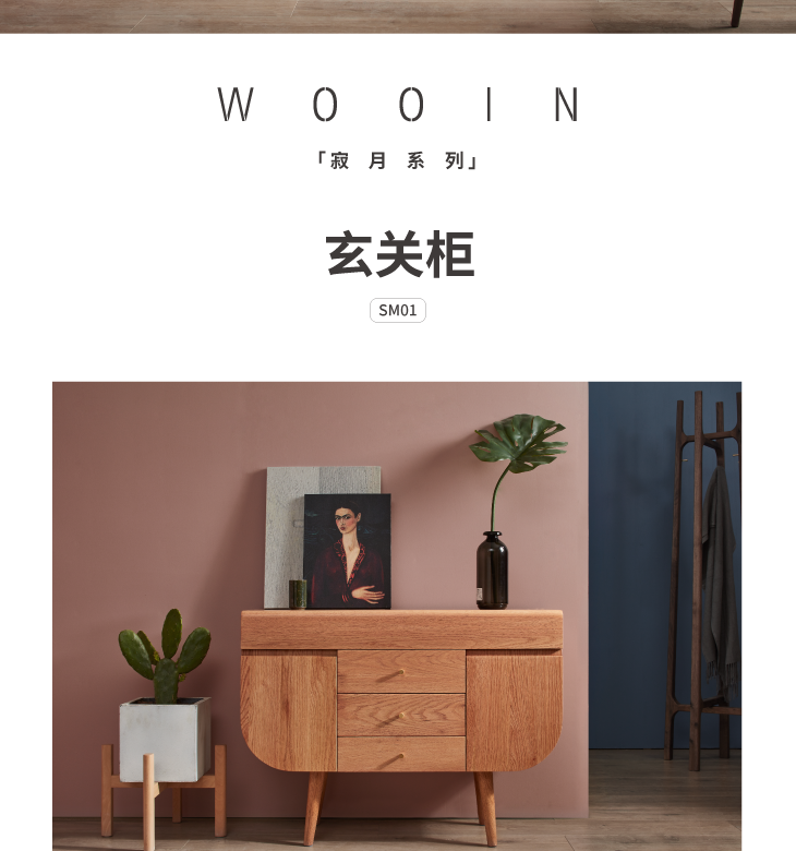 物应「寂月玄关柜」简约黑胡桃实木三抽门厅柜双开门餐边收纳鞋柜