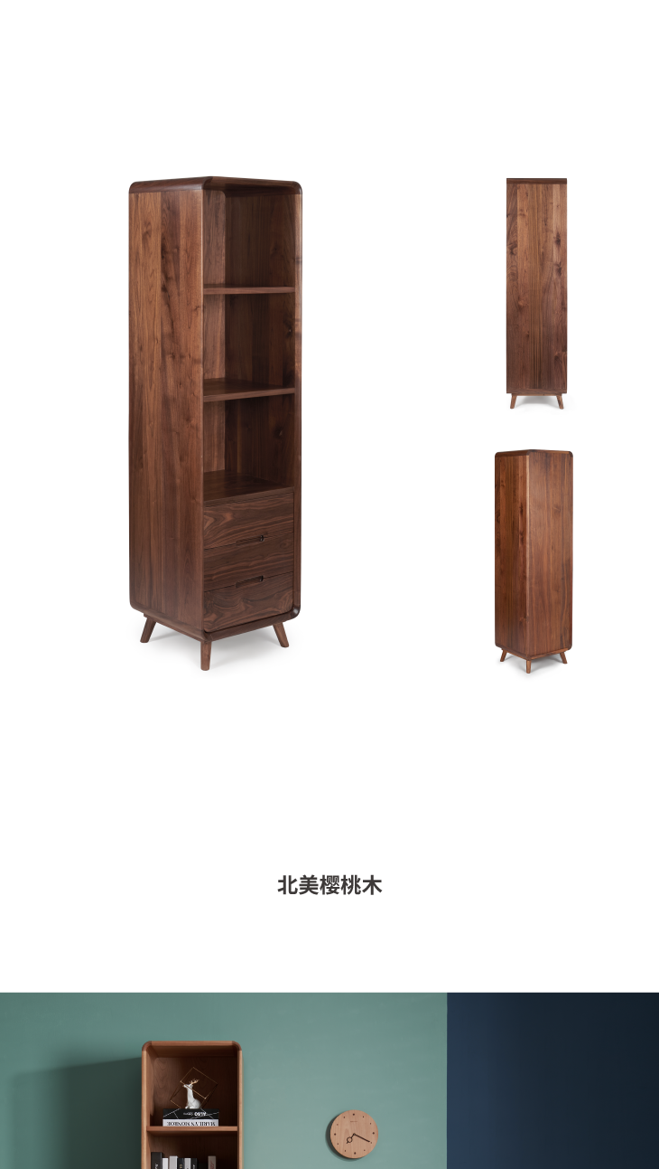 物应「凝月立柜」简约风格黑胡桃樱桃实木单体书柜三抽立柜高斗柜