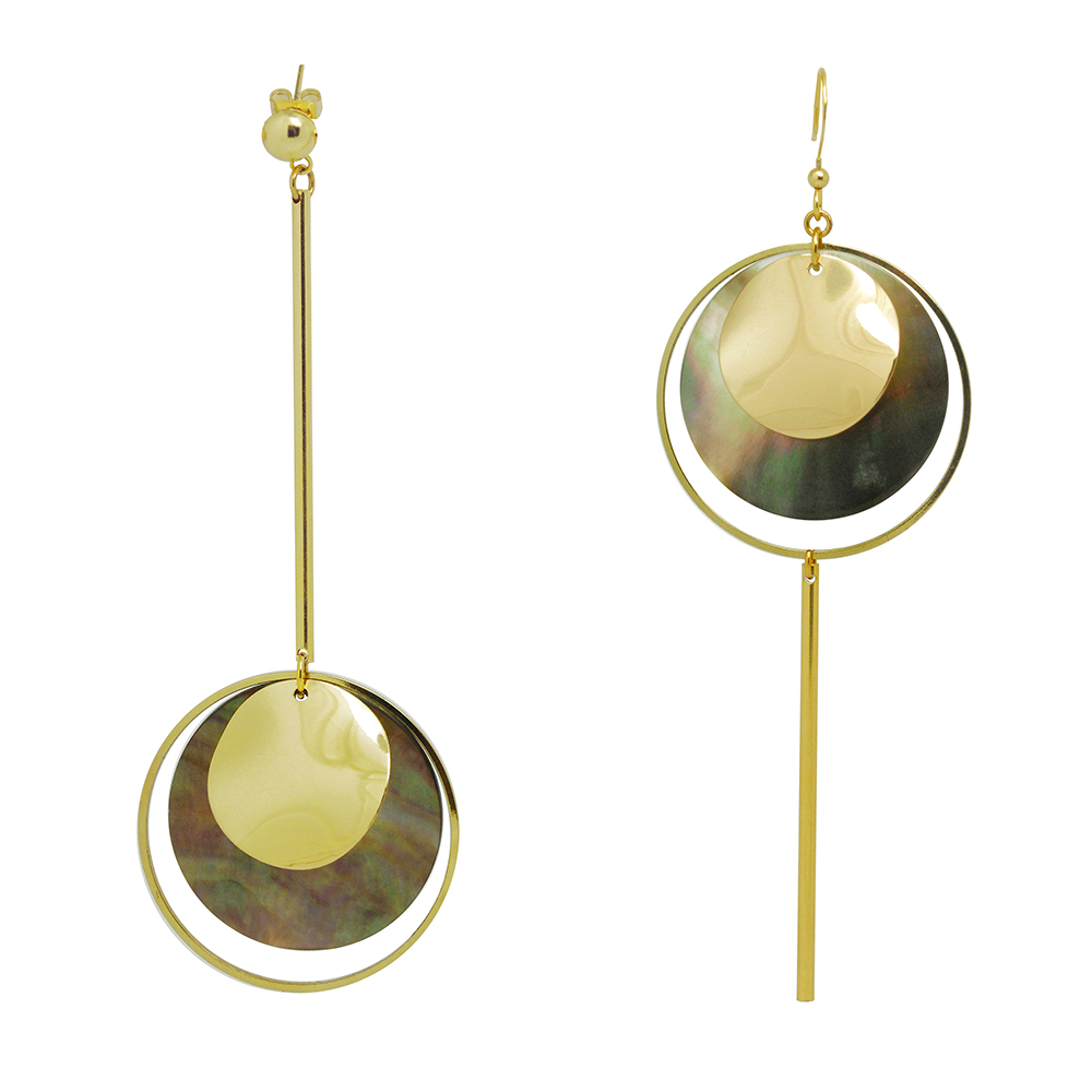 ESCA STUDIO 复古天然黑蝶贝贝壳圆环不对称长款耳环耳夹