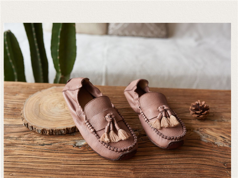 春夏韩版森系复古真皮流苏百搭软皮豆豆鞋一脚蹬懒人女单鞋