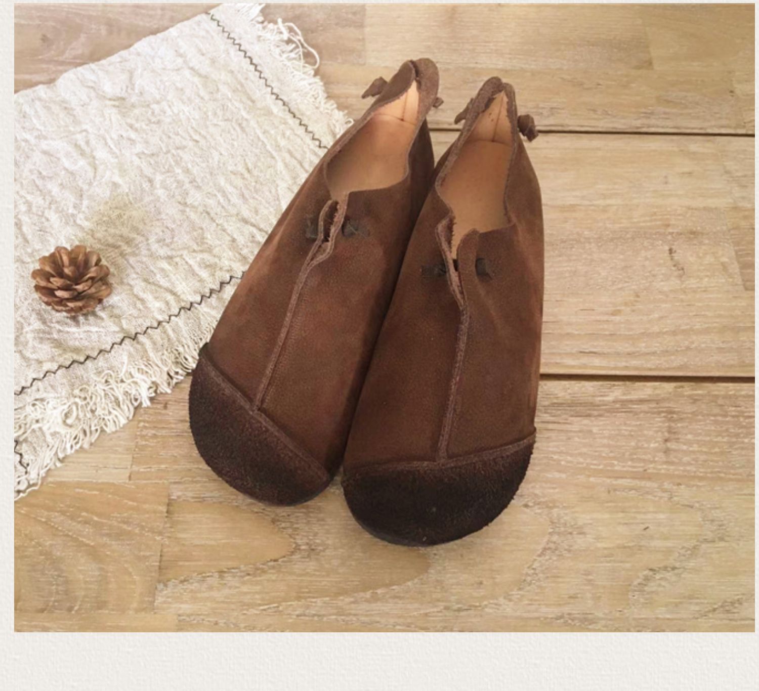 森系复古做旧真皮拼接擦色平底套脚舒适百搭女单鞋