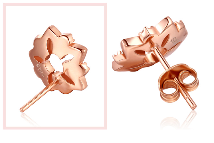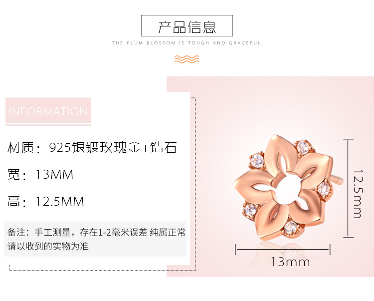 梅花心语雪花耳钉女纯银气质玫瑰金色韩国原创设计简约小清新