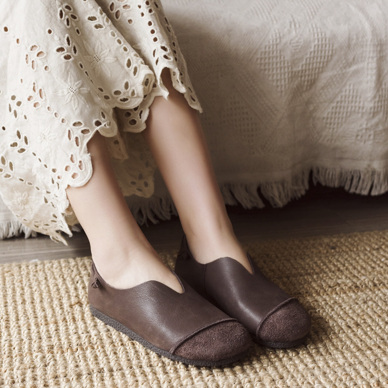 森系文艺复古拼接真皮圆头两穿法豆豆鞋纯手工女单鞋 0人收藏