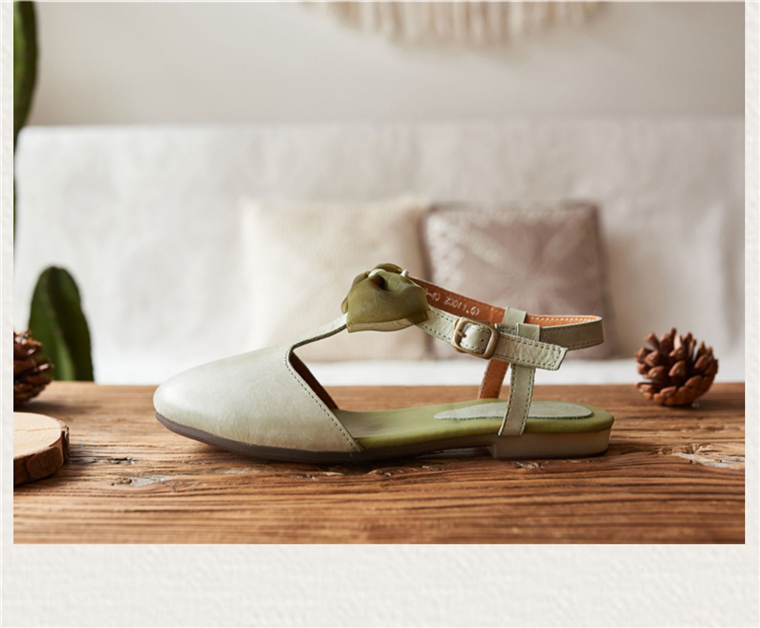 春夏韩版森系甜美包头蝴蝶结搭扣低跟百搭真皮丁字带半凉鞋