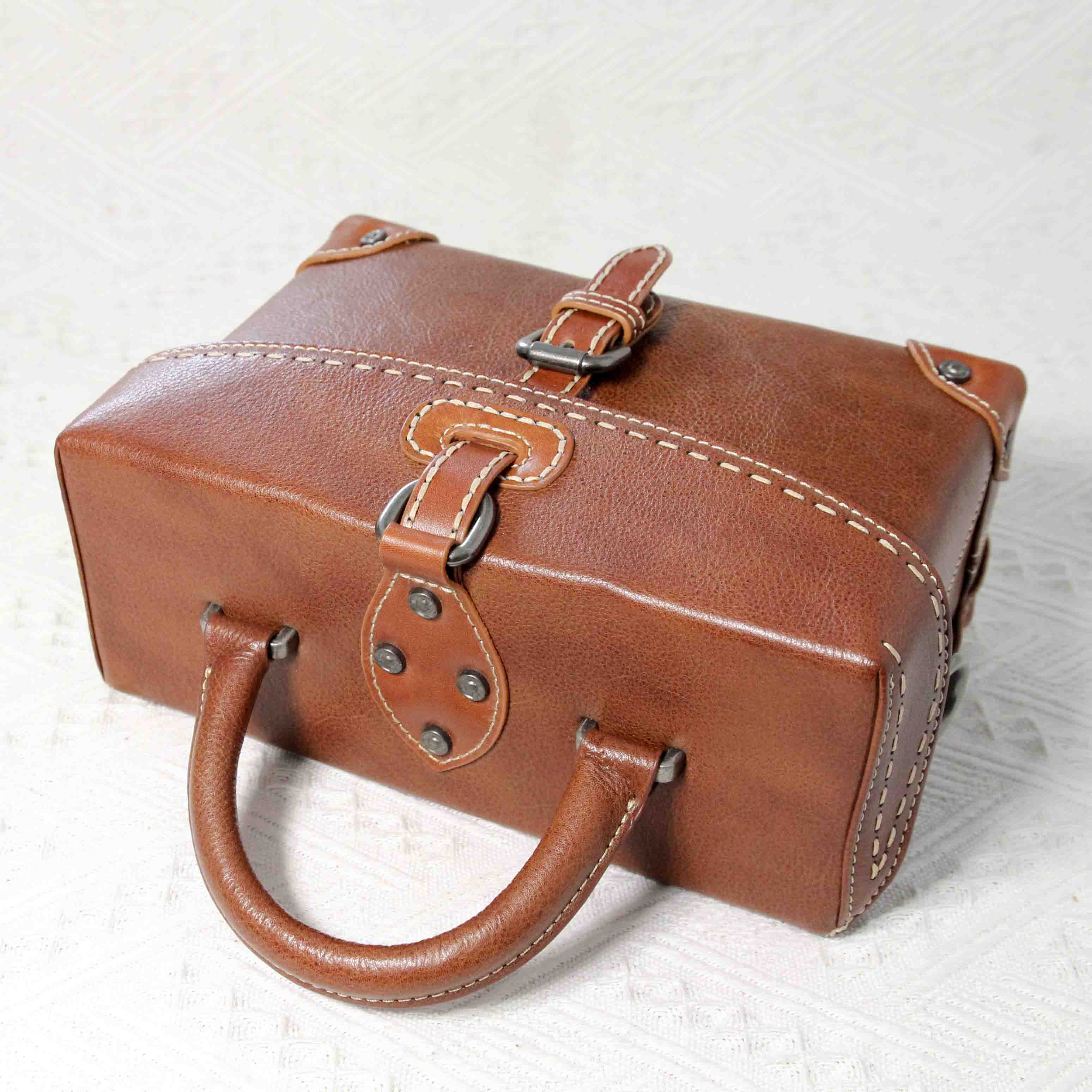 文艺女包复古小箱子手提包真皮定型斜跨包单肩小方包