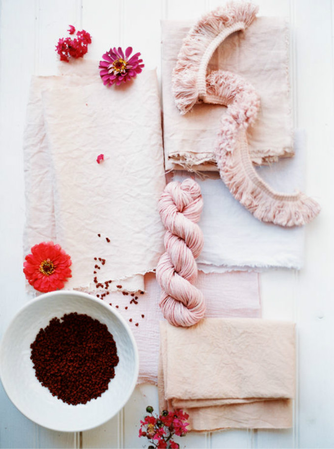 而鳄梨坑、刺梨、胭脂树种子、草莓、甜菜和牛油果,则可以赋予你的织物温暖的粉色。