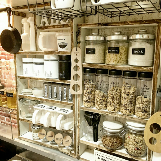 各式各样的食材,如面粉、粗粮、药材,用透明的容器装起来,不仅在整体上看起来统一整洁,食材一目了然拿取便利,不同食材相异的颜色形状还能点缀你的厨房,让人觉得你生活技能满点。不过,如果女主人更加重视简洁统一,可以使用同一种颜色的收纳容器,视觉统一透出素净质朴之感,比如白色就是不错的选择,简约范儿十足,也比较容易买到。