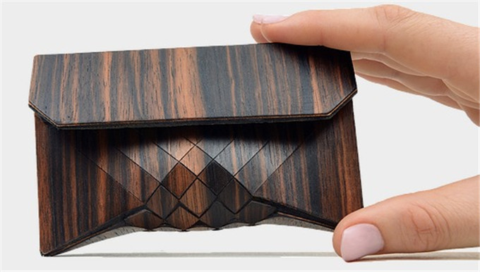 木头可以做什么?盒子?箱子?“Tesler +Mendelovitch”竟然能把它做成可折叠的手包,甚至有皮肤般的触感。“Tesler +Mendelovitch”为了兼具木头的耐用性和手包的实用性,设计师Tesler 与 Mendelovitch在木头的背面垫上布料和皮革的复合材料,同时他们用了几年时间,才摸索到一个较为合适的几何形态,通过合理的切割紧密排列,使得成品兼具形态的优雅和触感的柔和。