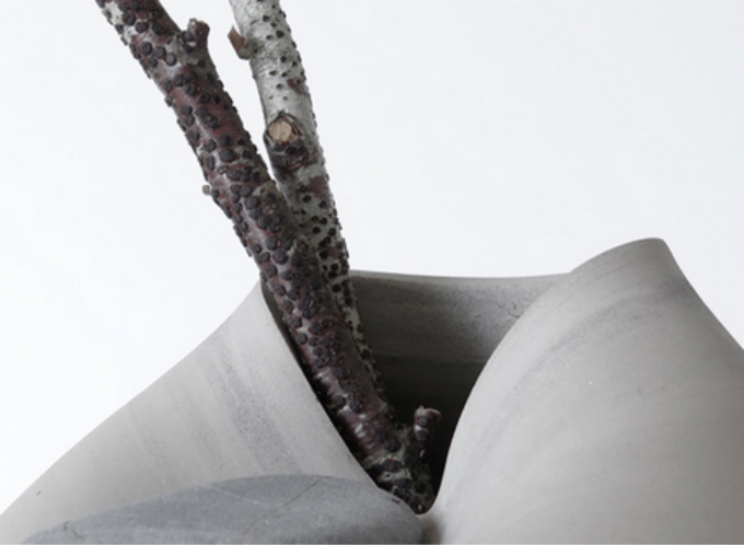 以陶瓷和石头为造型元素的花瓶艺术品优雅、静谧。天然的材料和质感让人能够感受到自然的力量,而虽静犹动的造型又蕴藏着力与美的生机,虽然没有精美、考究的釉色,但足以让人赏心悦目,并且略带几分禅意。