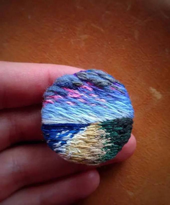 天空的云彩,落日红霞,高山丛林......这些,都装进了小小一块布里,然后可以做成做成纽扣、做成挂件,再将这些美景随身携带。