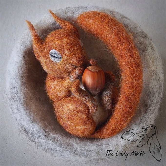 据蛾子夫人回忆说,有制作毛毡艺术的想法是从2013年的12月开始的。那个时候她完全没有任何针织毛毡的经验,完全靠着自学,以及充分地发挥自己的想象力和创造力,就有了萌宠们的诞生。