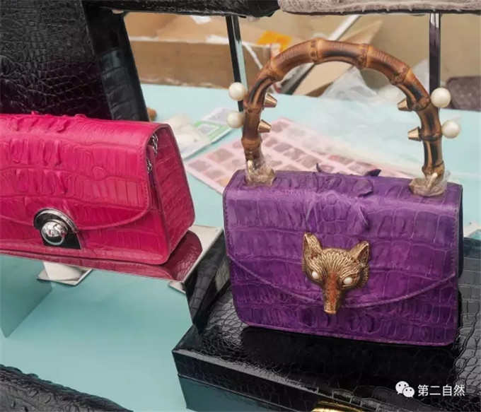 卖鳄鱼皮包的小哥向路人展示他最钟爱的一张皮,是他高价不卖的镇店之宝。