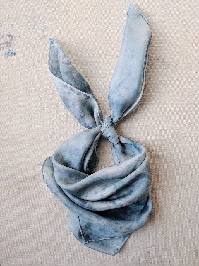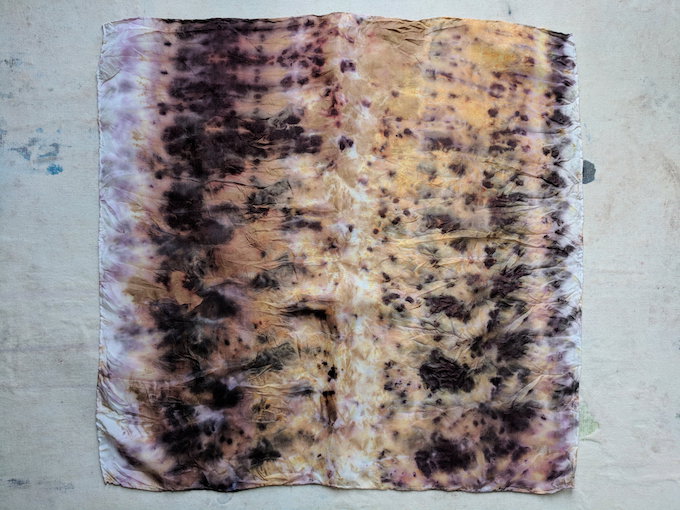 Kylee Barnard经常不做染缸,而是直接把材料放在正方形的丝绸上,