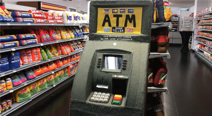 这些商品的价格不一,从几美元到几百上千美元都有,有便宜的5美金的泡泡糖、香烟打火机、日用品,也有昂贵的毛毡制收银机。对,这家店的提款机和收银机也是毛毡制品。