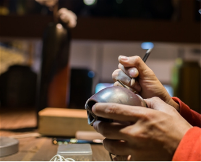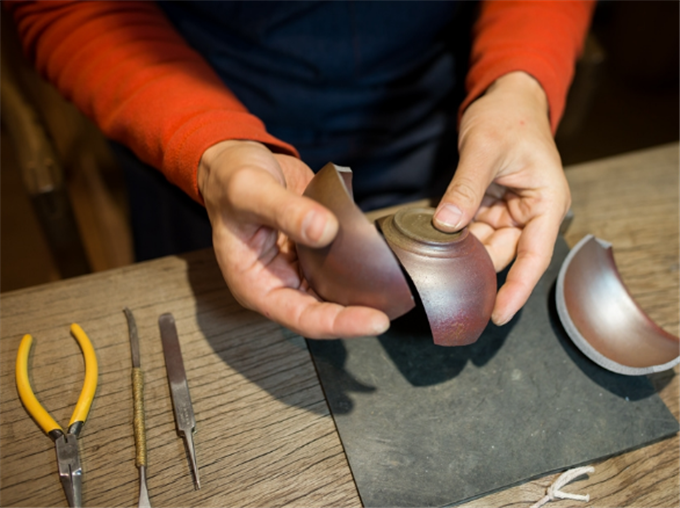 “济物利人乘造化,弥缝补阙代天工。”锔瓷工艺并不仅仅是一个讨生活的手艺,更是一门博大精深的技艺,若想在这一行走得长远,还需要很深的文化修养和艺术修为。令人欣慰的是,随着时代发展,现代锔瓷在传统的基础上,又开发出各种花样锔瓷法,开模浇铸壶嘴等技术,让修复好的物件更具观赏及收藏价值。一把碎掉的紫砂壶,在裂纹处铜锔了两朵海棠花,壶身顿时熠熠生辉;一个口沿破损的瓷瓶,将其包边后,很自然地锔上一朵梅花……一件件受伤的瓷器,在匠人的手下,枯木逢春,再次绽放艺术的魅力。