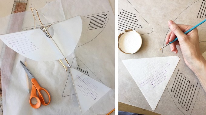 早在莱特兄弟发明飞机之前,意大利发明家达·芬奇就参考鸟类飞行时的动作,设计了一种名为扑翼机(Ornithopter)的仿生机械。纽约 Haptic 实验室以此为基础,用竹子制作了一种名为「Flying Martha」的创意玩具,使用轻质且柔韧的竹子制作框架,通过烛焰加热弯曲;翅膀和尾部的纸张选用桑树纸制成,不会轻易撕裂。