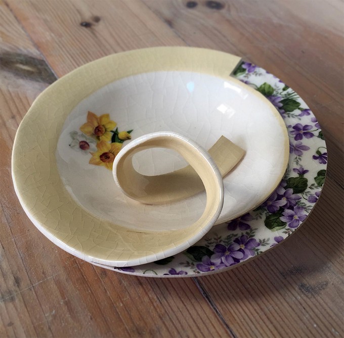 英国艺术家 Beccy Ridsdel 注重瓷盘的「内在美」,她的大部分陶瓷作品均以瓷盘为素材,通过「剥制」手段将表面颜色揭开,展现内部色彩。