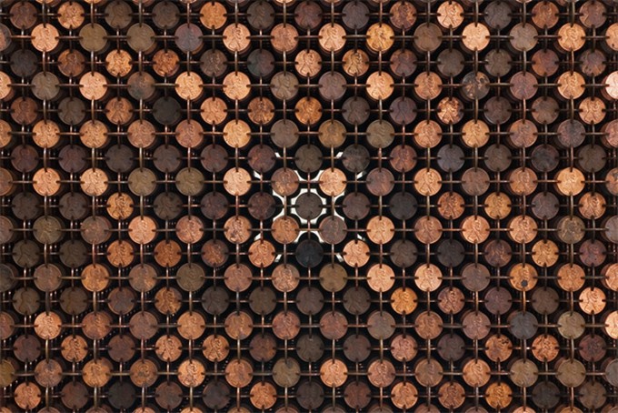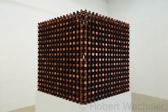 Adams用硬币上面的元素做素材,美国的艺术家Robert Wechsler 则认为硬币本身就是绝佳的素材。早在2012年,他就使用了26982个1美分美分硬币,将他们精心切割。重新组装成一系列不同体积的立方体,并将其命名为The Mendicant。