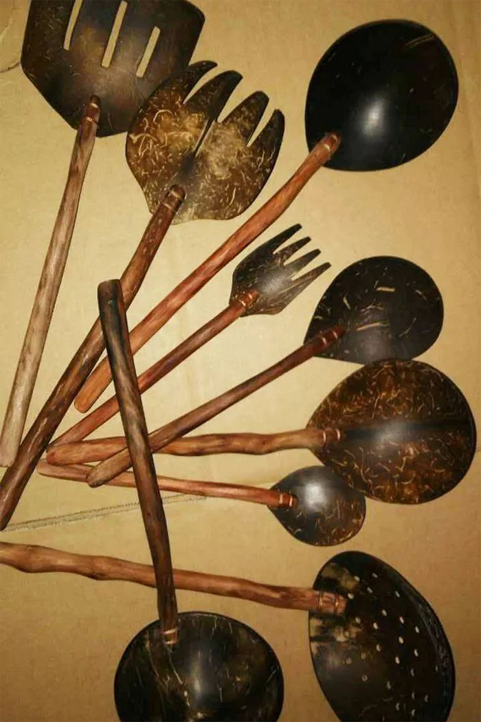 父亲和祖父他们做的都是椰子碗、勺子等用具,符史琼不想仅仅做这些生活用具,他便开始自己设计创作一些工艺品。